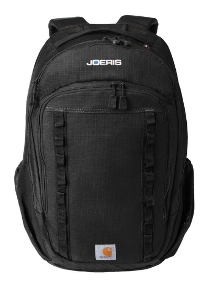 • 500D CORDURA ripstop polyester • Rain Defender durable water repellent (DWR) • Large main compartment with zippered mesh pocket • Dedicated 15-inch laptop sleeve and tablet sleeve • Contour-fit shoulder straps with FastDry sweat-wicking technology • Adjustable, hideaway sternum strap • Padded air mesh back panel • Adjustable, hideaway padded waist belt • 2 exterior mesh pockets • Fleece-lined eyewear compartment • Front zippered organization compartment • Hydration-tube-and-bladder compatible (tube and bladder not included) • Hook-n-haul system allows for attachments • Carhartt label sewn on front bottom • Capacity: 25L • Dimensions: 20.25"h x 12"w x 12"l; Approx. 1,526 cubic inches • Note: Bags not intended for use by children 12 and under